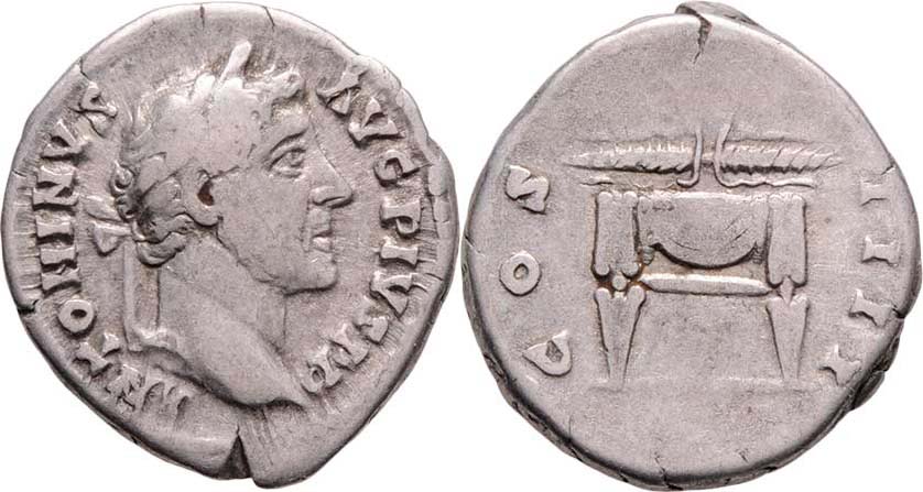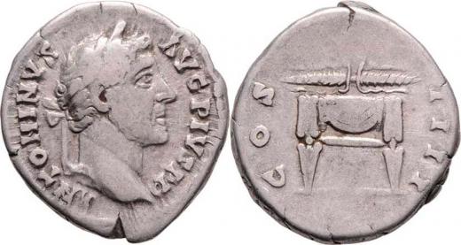 AR Denár, Rv:"COS.IIII.", okřídlený blesk nad trůnem, podobný jako S.1134, RIC.137 - mincovna Řím - ražba z let 145 - 161, oválný střížek, napr.okr., patina