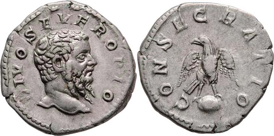 AR Denár, Rv:"CONSECRATIO.", orel sedící na globu, S.1718, RIC.191c - mincovna Řím - ražba po roce 212, nepravidelný okraj střížku, pěkná patina R!