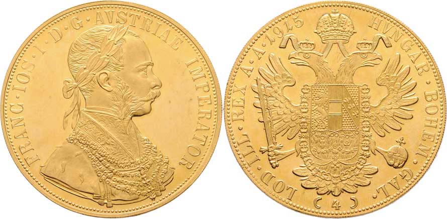 4 Dukát 1915 - novoražba, 13.960g, nep.rysky, patina