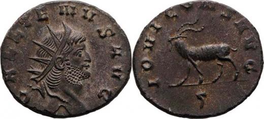 AE Antoninianus, Rv:"IOVI.CONS.AVG." kozel zleva, S.2865, RIC.207 - minc. Řím - ražba z let 261 - 268, oválný střížek, pěkná patina