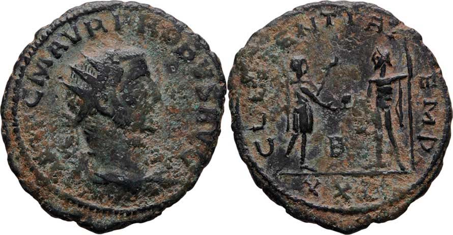 AE Antoninianus, Rv:"CLEMENTIA.TEMP.", stojící císař a Jupiter, S.3243, RIC.921 - mincovna Antiochia 2.dílna - blíže nedatován, exc., mírně kor., patina