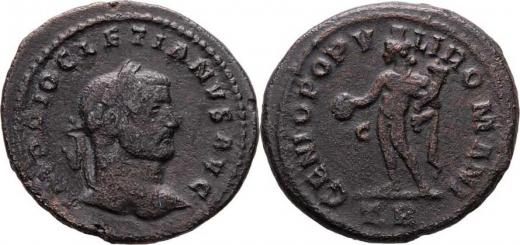 AE Follis, Rv:"GENIO.POPVLI.ROMANI.", RIC.6.154a, S.3433 - Treveri - 3.dílna - ražba z roku 295, pěkná patina
