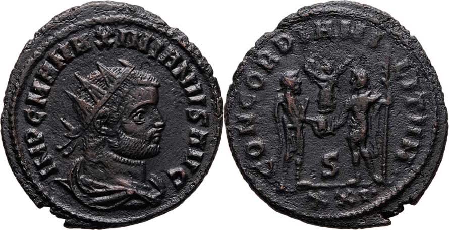 AE Antoninianus, Rv:"CONCORDIA.MILITVM.", RIC.607, S.3511 - Cyzicus - 2.dílna - ražba z roku 293, nepravidelný okraj střížku, pěkná patina