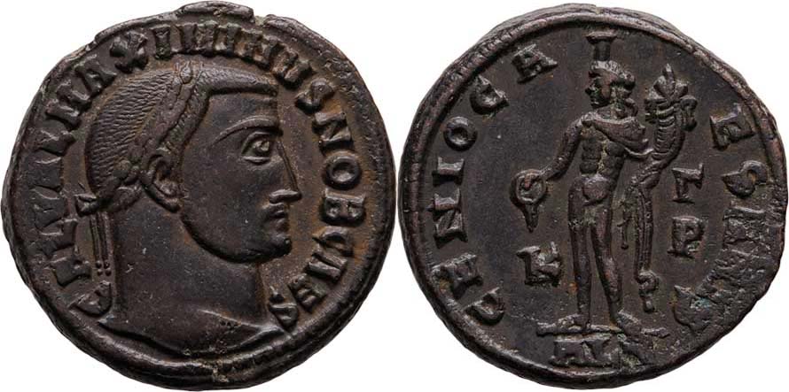 AE Follis, Rv:"GENIO.CAESARIS.", S.3653, RIC.99a - Alexandria - 3.dílna - ražba z let 308 - 310, nep.vady materiálu v Rv., pěkná patina