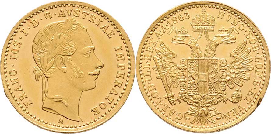 Dukát 1863 A, 3.486g, dr.hr., nep.rysky