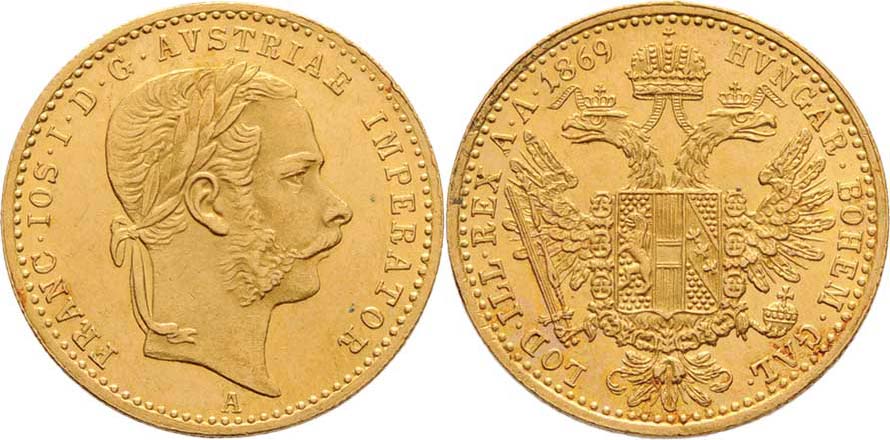 Dukát 1869 A, 3.475g, nep.hr., nep.rysky, pěkná patina R!
