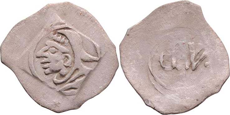 Fenik se čtyřrázem - hlava mnicha zleva / EW, Rad.9, 0.456g, nep.nedor., pěkná patina
