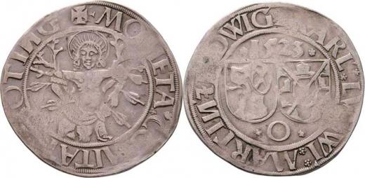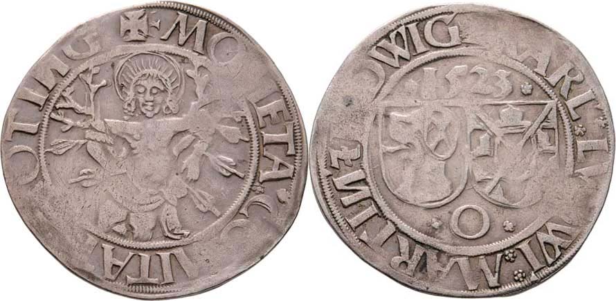 Batzen 1523 O - sv. Šebestian, opis / znaky, opis, Sa.1422 (obr.633), 3.864g, nedor., pěkná patina