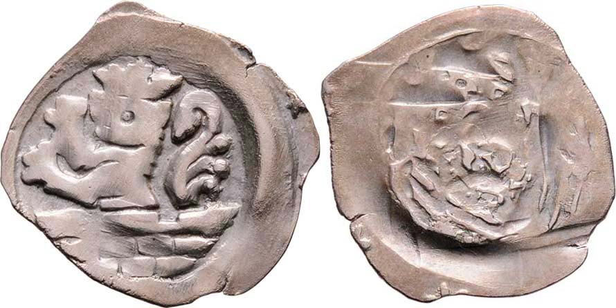 Fenik b.l. - lev nad hradbou zleva / anděl, Rad1.7, Emmerig.236, De Wit.II.2372, 0.960g, nedor., patina