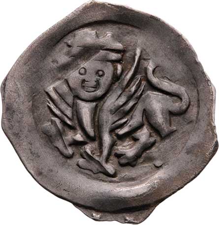 Fenik b.l. - okřídlený lev s hlavou biskupa / anděl, Rad1.8, Emmerig.237, De Wit.II.2376, 0.818g, nedor., mimořádně kvalitní ražba revesu, pěkná patina R!