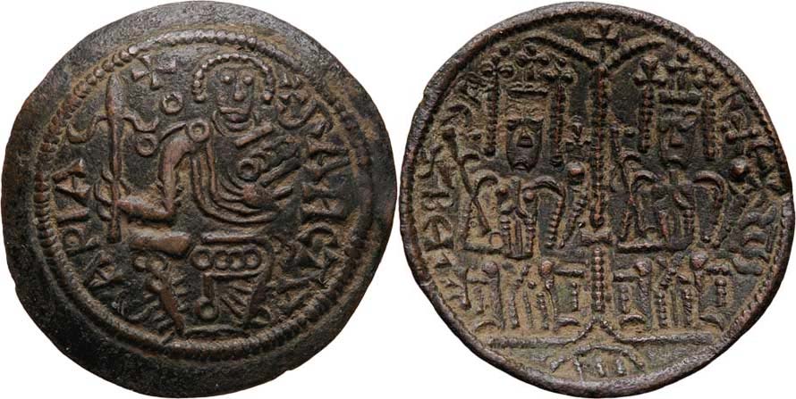 AE Mince byzanckého typu, Husz.72, RBS.478-479, 2.912g, pěkná patina