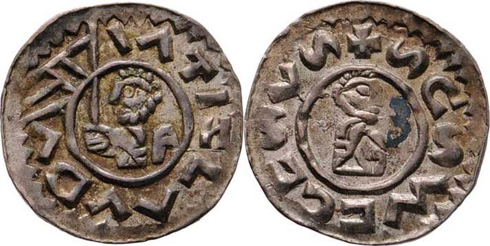 Denár, Ca.346, F.IX/1 (879), 0.811g, krásná patina, tmavou barvou napsaná číslice "3"