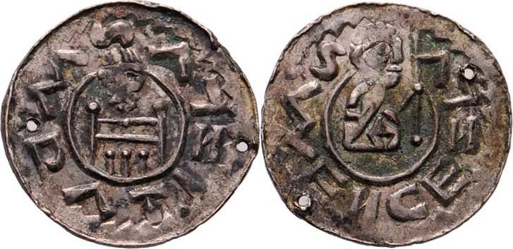 Denár, Ca.350, F.IX/3 (886) - široký trůn, 0.703g, nep.nedor., dvě malé dírky, patina