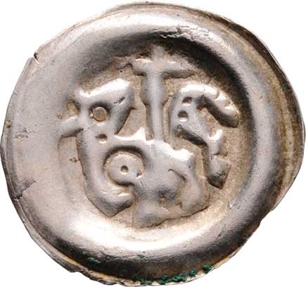 Brakteát moravský, Ca.942b, F.XXXII/32 (2424) - na násadce křížku kulička, 0.446g, nep.exc., nep.nedor.