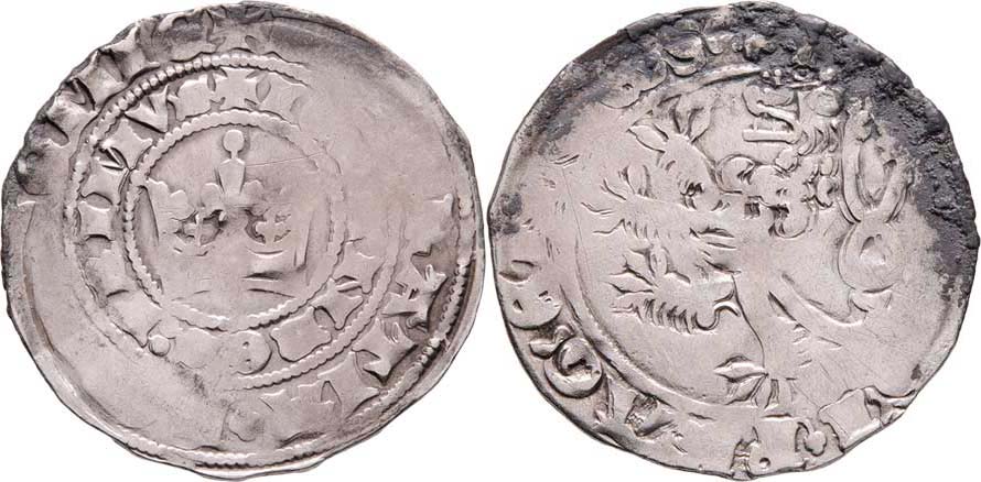 Pražský groš, Cn.47, bez rubní značky, 3.735g, mírně exc., nedor., nep.dvojráz, vl.škr., skvrny, patina