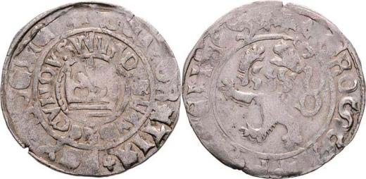 Pražský groš, Kutná Hora - Blažek Dráb, Há.XII.e/2 - varianta opisu aversu "....BOEME", 2.598g, nep.exc., nedor., naprasklý okraj, patina