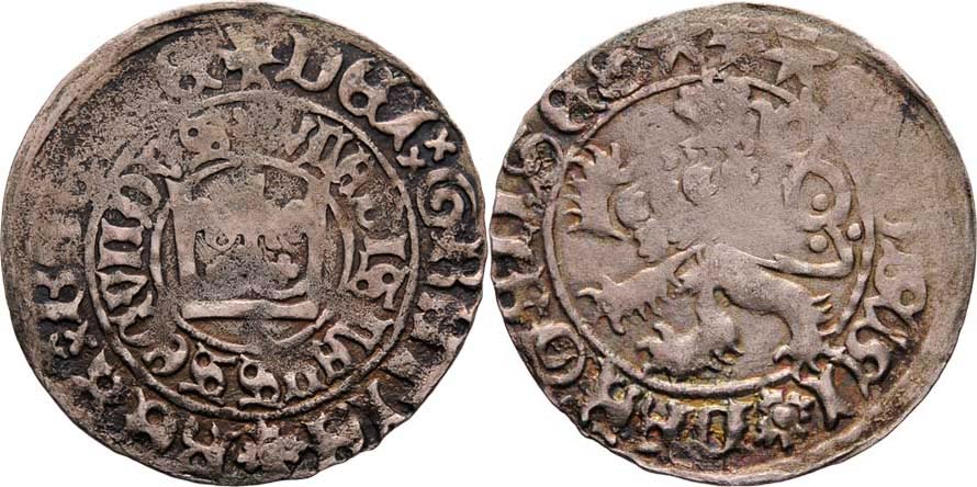 Pražský groš, Kut.Hora - Hanuš z Řásné, Há.XIII.e/2, 2.227g, dr.vady materiálu, dr.vada razidla, nedor., patina