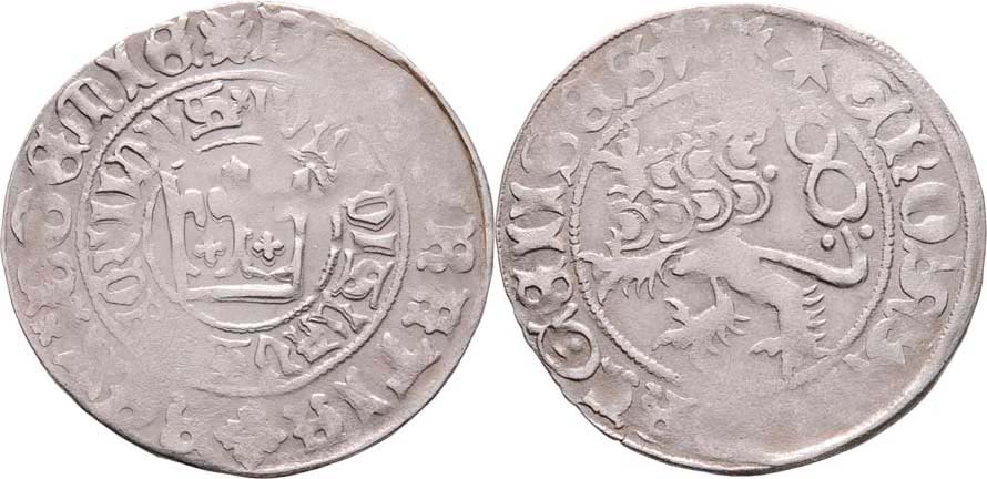 Pražský groš, Kut.Hora - Hanuš z Řásné, Há.XV.a/1, 2.470g, nedor., pěkná patina