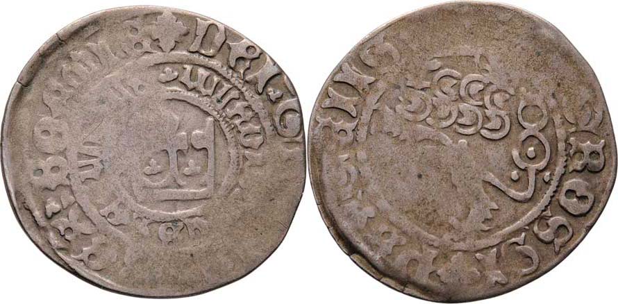 Pražský groš, K.Hora - Hanuš z Řásné, Há.XXIII.a/1 - varianta - chybí malé měsíčky na krku lva (jako Há.XXI.), 2.520g, exc., nedor., pěkná patina RR!