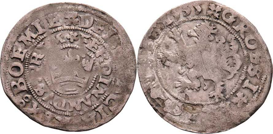 Pražský groš 1535, K.Hora-Jeptiška, Chv.6/a.K nebo Chv.6/b.K, jako J.4, jako MKČ.70, královská koruna, vady materiálu, nedor., patina