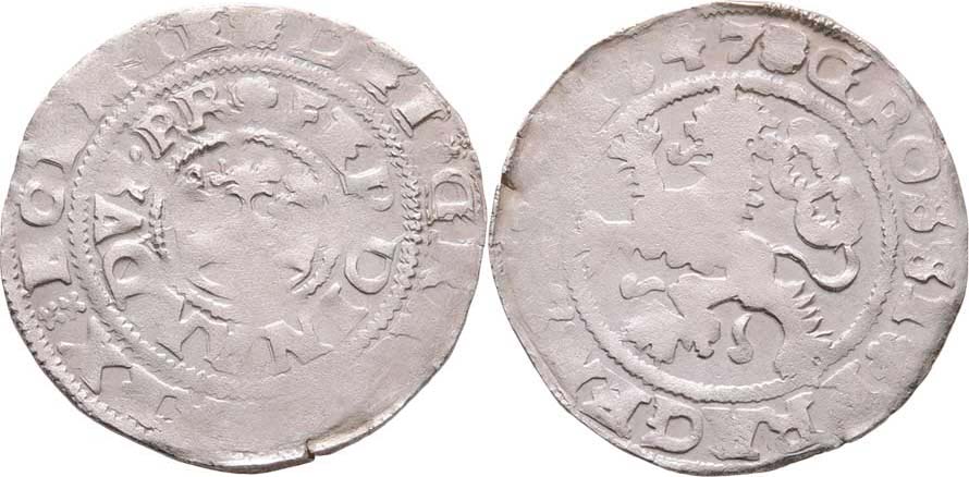 Pražský groš 1547, K.Hora-Lídl, Chv.2/?.K, královská koruna, podobný jako J.4, MKČ.70, 2.908g, nedor., pěkná patina R!
