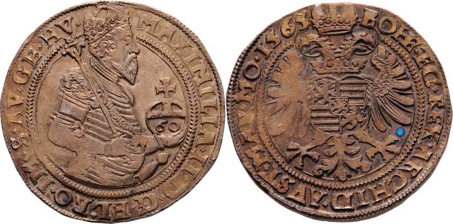 60 Krejcar 1565, K.Hora-Lídl a Karel, J.6, MKČ.190, 24.740g, opis končí "..MAR.MO.", nep.vady materiálu, nep.nedor., zajímavá "zlatá" patina, Chaurova značka
