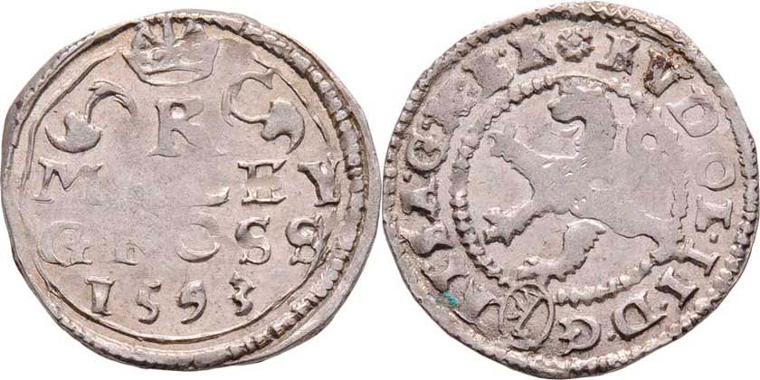 Malý groš 1593, K.Hora-Herold, HN.6 (opis 7a), nápis " MALEY / GROSS / 1593 ", 1.044g, nedor., pěkná patina