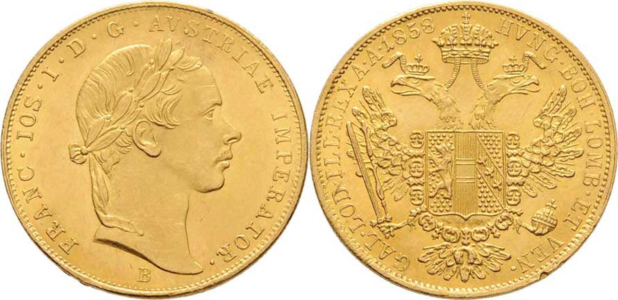 Dukát 1858 B, 3.490g, dr.hr., nep.rysky, krásná patina