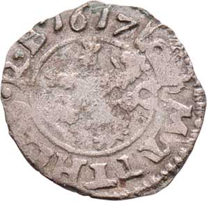 Bílý peníz 1617, K.Hora-Hölzl, J.2e, MKČ.548, 0.322g, exc., nedor., patina R!