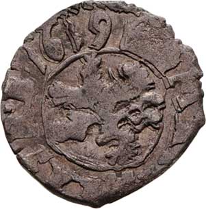 Bílý peníz 1619, K.Hora-Hölzl, J.2e, MKČ.548, 0.453g, nep.exc., nep.nedor., pěkná patina R!