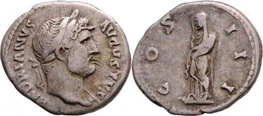 AR Denár, Rv:"COS.III.", stojící Pudicitia, RIC.176, podobný jako S.983 - mincovna Řím - ražba z let 125 - 128, oválný střížek, patina