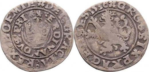 Pražský groš 1536, Kutná Hora-Jeptiška, Chv.C13/b.K, královská koruna, J.4, MKČ.70, 2.609g, nedor., patina