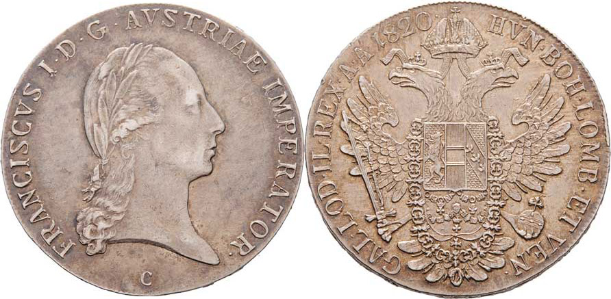 Tolar konvenční 1820 C, Praha, 28.002g, nep.just., nep.hr., nep.rysky, pěkná patina
