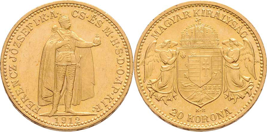 20 Koruna 1912 KB, 6.776g, nep.hr., nep.rysky, téměř