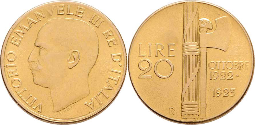 20 Lira 1923 R - 1.výročí fašismu, KM.64 (Au900), 6.329g, nedor., nep.hr., nep.rysky R!