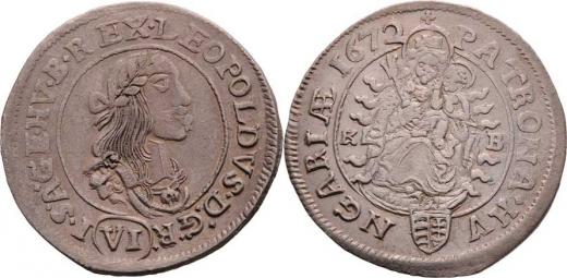 VI Krejcar 1672 KB, Nech.1193, Husz.1450, 3.137g, pěkná patina