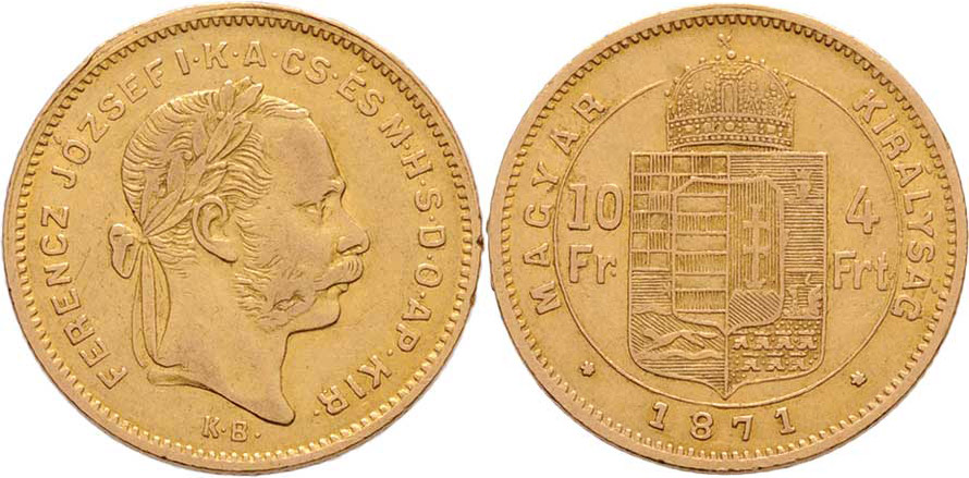 4 Zlatník 1871 KB, 3.185g, dr.hr., nep.rysky, pěkná patina