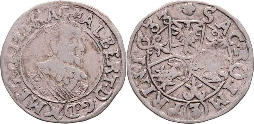 3 Krejcar 1633, Jičín-Steinmüller, Ne.95, Meyer.328, Don.4016, 1.527g, nep.nedor., nep.dvojráz, pěkná pat.