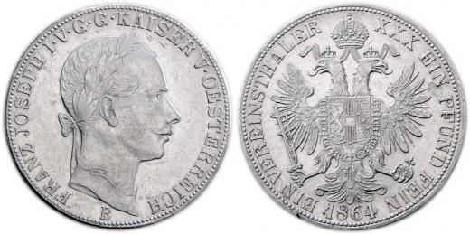 Tolar spolkový 1864 B, 18.486g, dr.hr., dr.rysky R!
