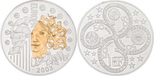 50 Euro 2003 - Europa, KM.1340 (Ag999, 100mm, 1000g, pouze 2.000ks), kapsle RR!