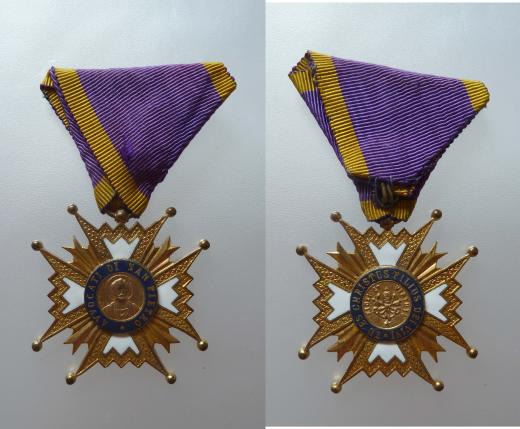 Kříž Avvocati di San Pietro, Nesign., zlacený bronz 41x41 mm se závěsem a stuhou, poškozené smalty