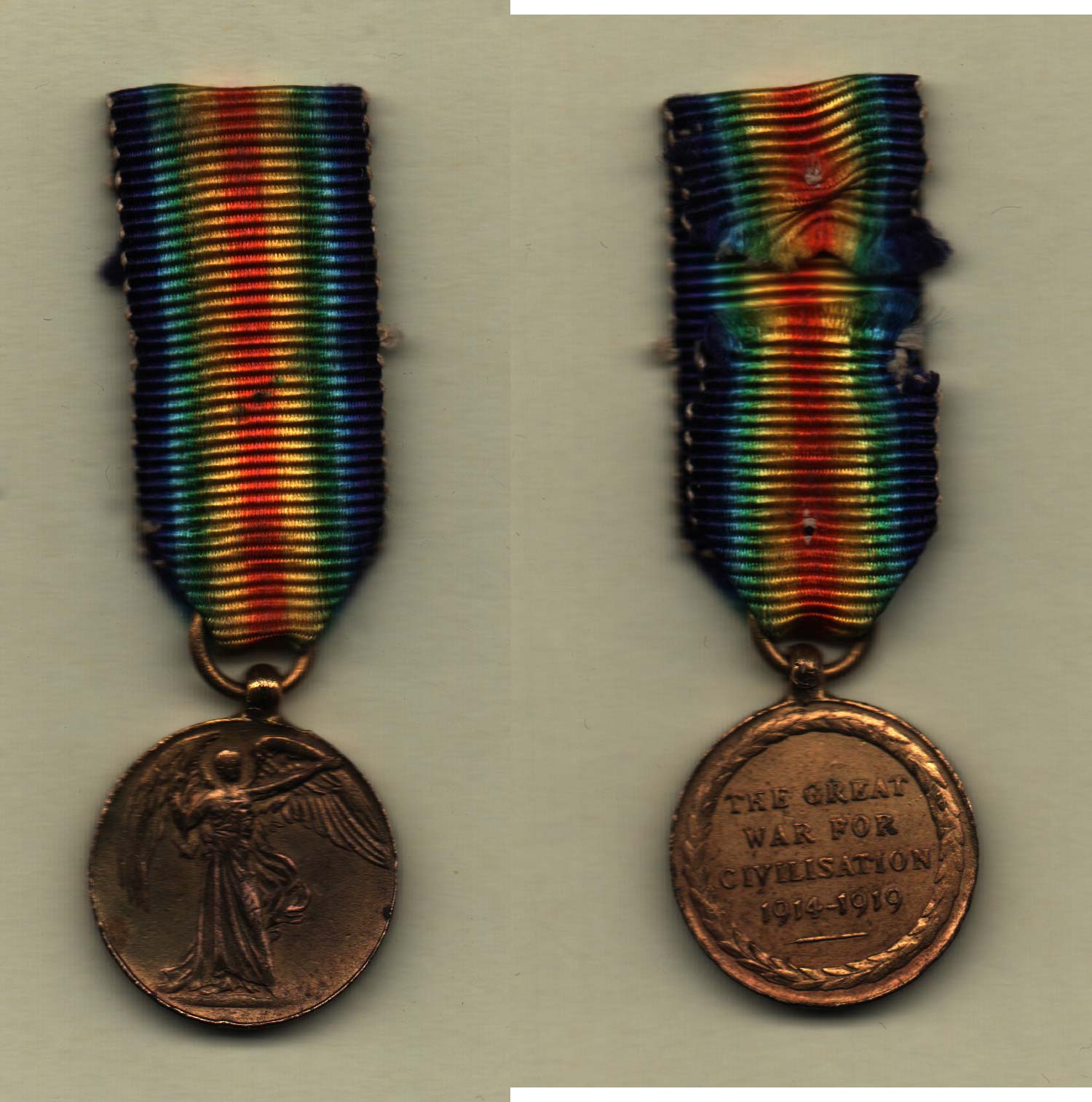 George V. - miniatura Mezispojenc. medaile vítězství 1914 - 1918, jako K-K.C44, Josl.146, dr.hr., dr.rys., původní stuha