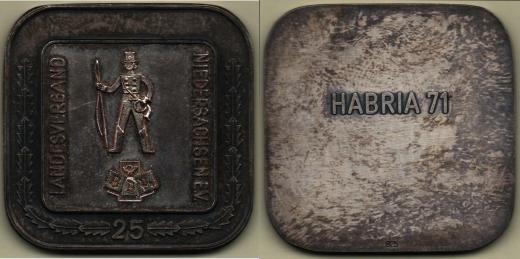 Habria 1971 - výstava Dolnosaského filatel. spolku, Nesign., Punc. Ag925, 46x46 mm, 48.398g, patina, tém.