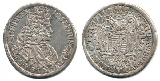 1/2 Tolar 1711 KB, Hal.454, Hus.1576, Un.617 (přeražba z r.1700)