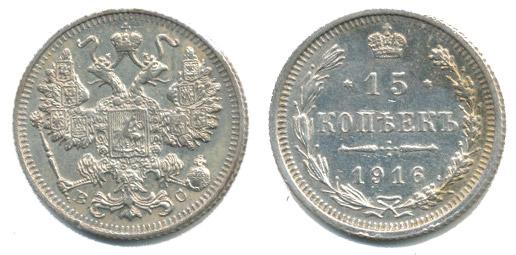 15 Kopějek 1916 b.zn., minc.Ósaka, KM.21a.1, Uzd.2182 sk.XIX-skup.A/a _tém.