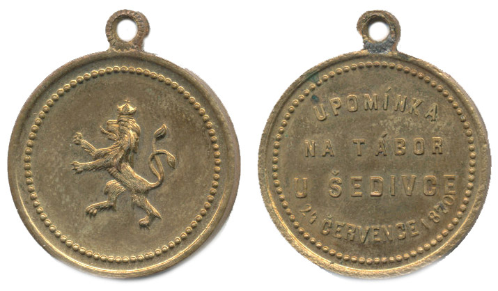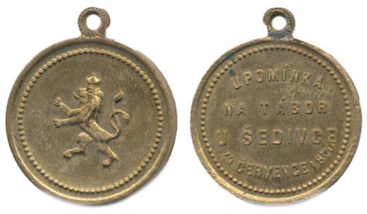 Nesign. - upomínka na tábor u Šedivce 24.7.1870 Český lev zleva / 4řádk.nápis, Bronz 27 mm_orig.raž.ouško