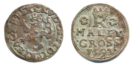 Malý groš 1593, Jáchymov-Hoffmann, HN.8b (opis 7c), Ja.5