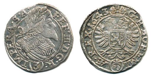 3 Krejcar 1643, Praha-Wolker, J.3b, MKČ.1181