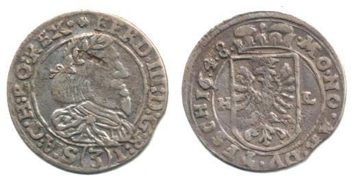 3 Krejcar 1648 H-L, Těšín, Hans Loss, MKČ.1350, Fr3081, SJ.103/42 _dr.v.stř. v av. RR!