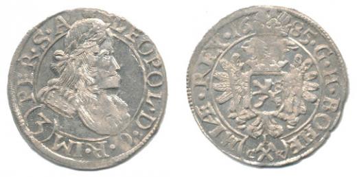 3 Krejcar 1685 CIK, K.Hora-Krahe, Nech.301, MKČ.1455, Ja.10_tém.